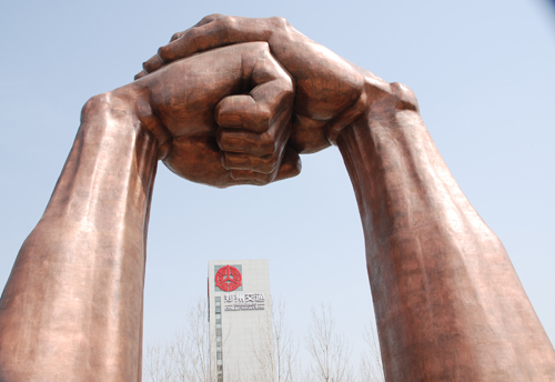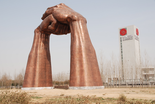 《禮儀之門》安裝地點:西四環(huán)連霍高速溝趙收費站對面  雕塑30米,材質:鍛銅。“抱拳禮”是中華傳統(tǒng)禮儀風范的一種禮貌動作,含有尊重、歡迎的寓意。以“抱拳禮”為原型的30米高雕塑《禮儀之門》有望成為鄭州新地標。